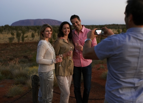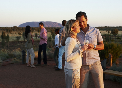 ウルル・カタジュタ国立公園を見下ろす丘にある会場にて、カナッペと冷えたスパークリングワインをご堪能頂きながら、夕陽に染まるウルル・カタジュタを鑑賞します。