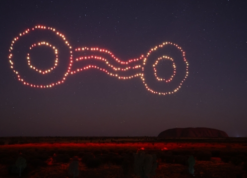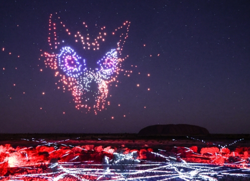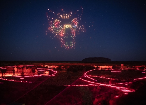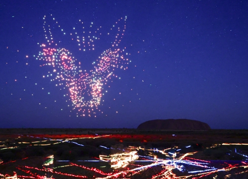 ドローンやレーザー、プロジェクションマッピング等を使って、現地先住民アナング族に伝わる物語を夜空に描き出します。