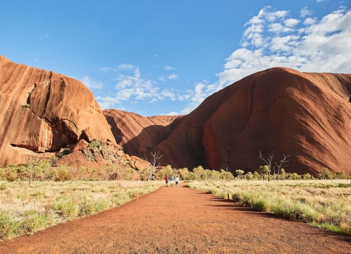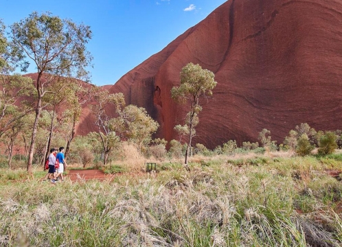 ドライバーガイドと一緒に、ウルルの麓を一周する10.5キロのウォーキングに出発します。