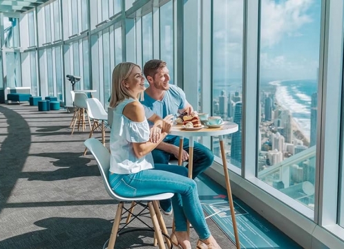 クイーンズランド州で最も高い建物、Q1スカイポイント展望台で、360度の景色を眺めながらランチをお楽しみください。