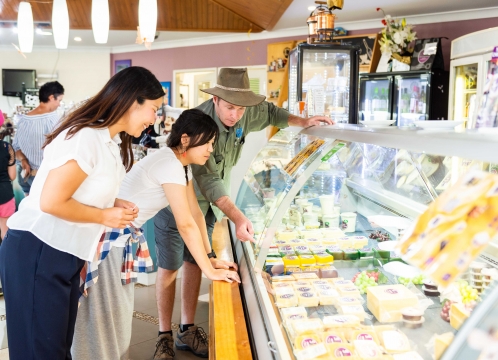 キレイな空気と広大な高原で飼育された乳牛たちのミルクを使用して作った「できたてチーズ」を試食します。他にもチョコレートやヨーグルトなど、ケアンズの人も買い付けにくる、ここでしか買えないものがずらり! お土産にも最適です。