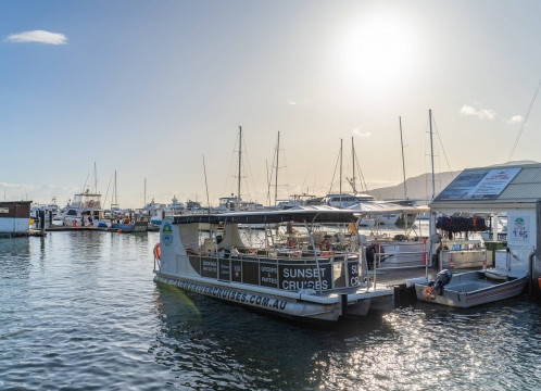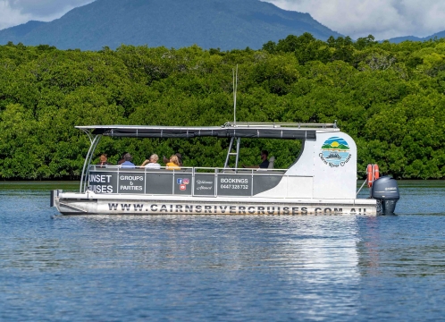 ケアンズリバークルーズでは、穏やかなケアンズのトリニティインレットにて、360°の景色が見えるように設計され、心地よい乗り心地を追求したモダンなボートで催行するクルーズツアーを提供しております。日中のインレットクルーズや夕方催行のサンセットクルーズにて、熱帯雨林の山々を背景に美しいトリニティーインレットをお楽しみいただくことができます。
