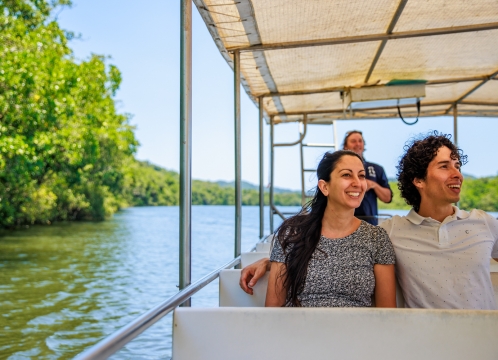 デインツリー川をボートでクルーズし、イリエワニなどの野生動物を観察します。また、熱帯雨林のマングローブ林や、そこに生息する様々な動植物を観察できます。