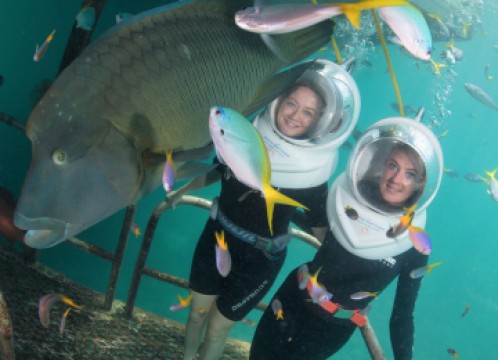 髪や顔を濡らす事なく、水中のサンゴ礁を体験出来るアクティビティです。20分のプログラムの間、水深3.5メートルまで潜ることができ、カメラマンがあなたの写真を撮ってくれますよ♪