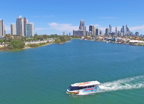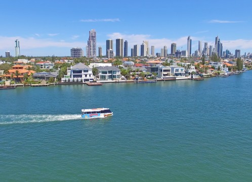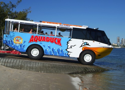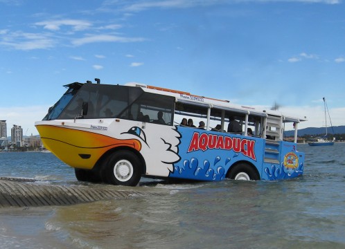 陸も水も一度に観光できるツアーです!ゴールドコーストのきれいな街並みを走りながら水に入水します。先ほどまで見えていたきれいな街を水の上からお楽しみください。観光しながらアトラクション気分も味わうことができます!