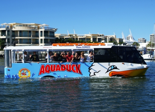 サーファーズパラダイスの中心部を出発し、水陸両用車「アクアダック」に乗って、ユニークでエキサイティングなリバークルーズをお楽しみください。 -