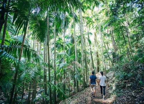 ガイドと一緒に野生動物を見つけながら、古代の熱帯雨林を滝まで散策しましょう。