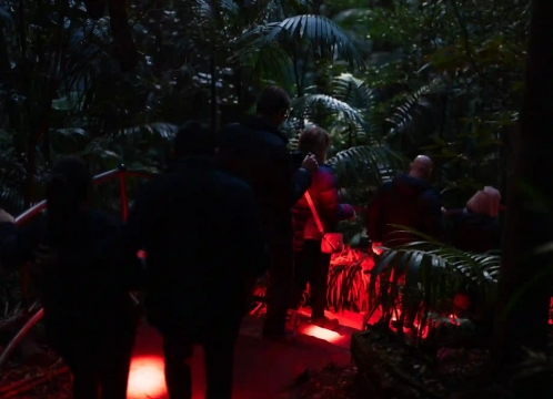 灯りを頼りにした夜の熱帯雨林のガイド付きウォーキング。