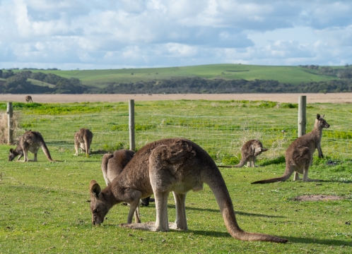 野生カンガルーを探しに行きます!アングルシー ゴルフ コースのカンガルーは、何千年もの間、街の景観の一部となってきました。約 300 匹ほどと推定され、手入れの行き届いたフェアウェイとグリーンを歩き回っています。