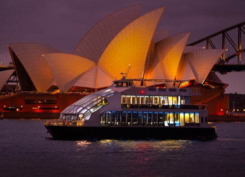 全面ガラス張りのモダンな船内からは、オペラハウスやハーバーブリッジをはじめとするシドニー湾の美しい夜景を360°パノラマでお楽しみいただけます。シェフが腕を振るう特製コースディナーと、きめ細やかなウェイターサービスが、特別なひとときを演出。大切な方とのロマンチックなディナーや、思い出に残る特別な体験に最適です。