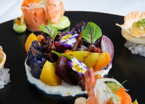 ・サーモンセビーチェ(魚介類) スモークサーモン | アボカド | ソテーしたエビ