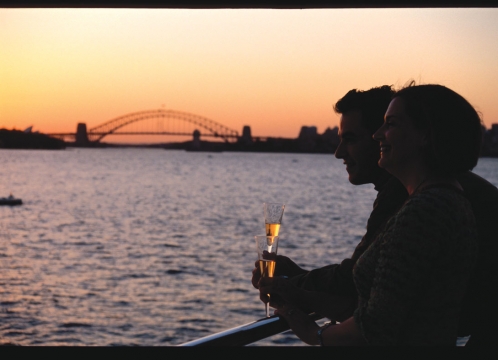 シドニー湾の夕日を見ながら、豪華なお食事をお楽しみください!