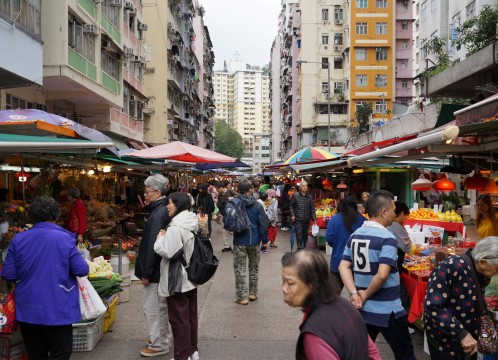 筲箕灣駅 到着後、駅前に位置する金華街の市場を散策