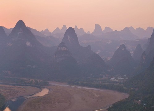 桂林市から陽朔などの街を流れる「漓江」を船に揺られながら、自然によって生み出された数々のカルスト地形独特の風景を鑑賞いただきます。さながら山水画そのものの絶景をご堪能ください。途中には冠岩、童子拝観音、九馬画山、黄布倒影などの見どころが、また中国20元札に描かれた風景がそのまま目の前に広がります。雨季には霞がかかる神秘的な水墨画の風景が、乾季は晴れの日が多く、様々な形をした峰、飛瀑、澄んだ河の中を色鮮やかに見ることができます。