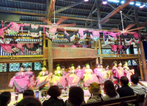 龍勝地区の少数民族集落を訪れ、長髪で有名なヤオ族のショーを鑑賞