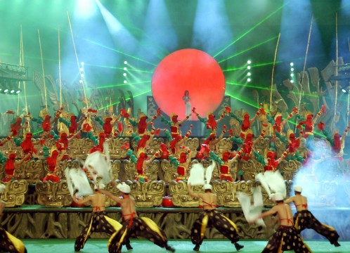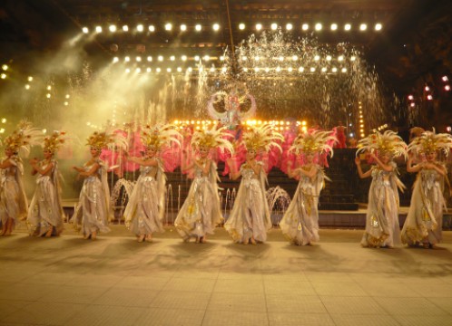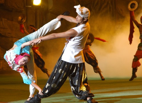 巨大な屋外専用ステージで、総勢500人以上のキャストが1200着以上の民族衣装をアレンジした煌びやかな衣装に身を包み、ダンス・マジック・中華雑技などの華麗な技を繰り広げます。光・音・水を用いたド派手な演出も見ごたえ抜群!特に屋外ならではの実際の火を使ったシーンは直接熱を感じることができるほどの迫力です。