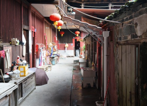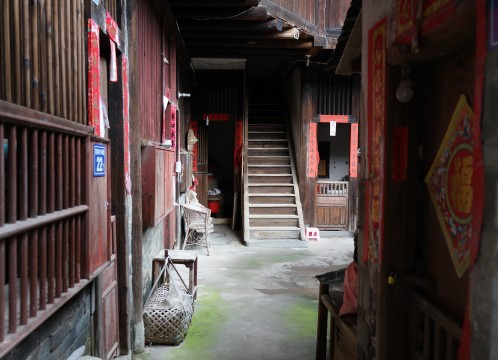 華安県大地土楼群(華安土楼群)では最も有名な土楼で、規模も福建土楼の中で最大級。250年前に建てられたもので、土楼の中では珍しいテラスハウスタイプとなっています。各階ごとに部屋の前にぐるりと通路があるのではなく、1階から4階までを立て切りの1区画としてそれぞれ内側に専用階段を持つ構造となっています。他の土楼に比べて一軒あたりの専有面積が広く、ベランダ付きの部屋もあるという変わり種でもあります。