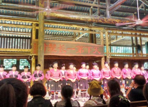 龍勝地区の少数民族集落を訪れ、長髪で有名なヤオ族のショーを鑑賞