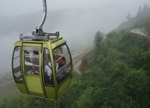 ロープウェイに乗り、山頂から見下ろす棚田は息をのむ美しさです。