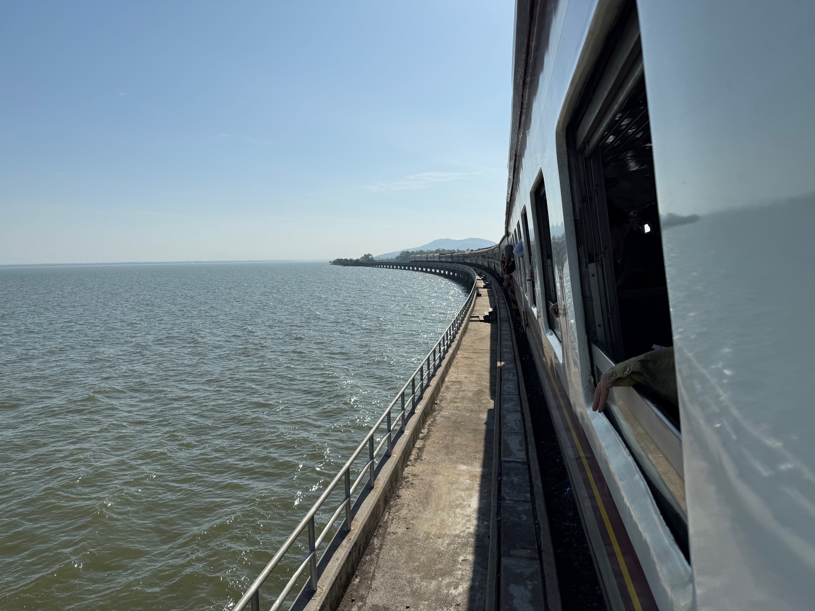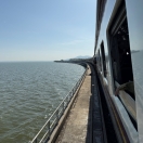 ダムの上を走る列車は爽快です。カーブを曲がるときには車両全体を車窓から見ることが出来て写真映えします。列車が途中で止まり、線路上で写真が取れるのもめったに出来ない体験です。
