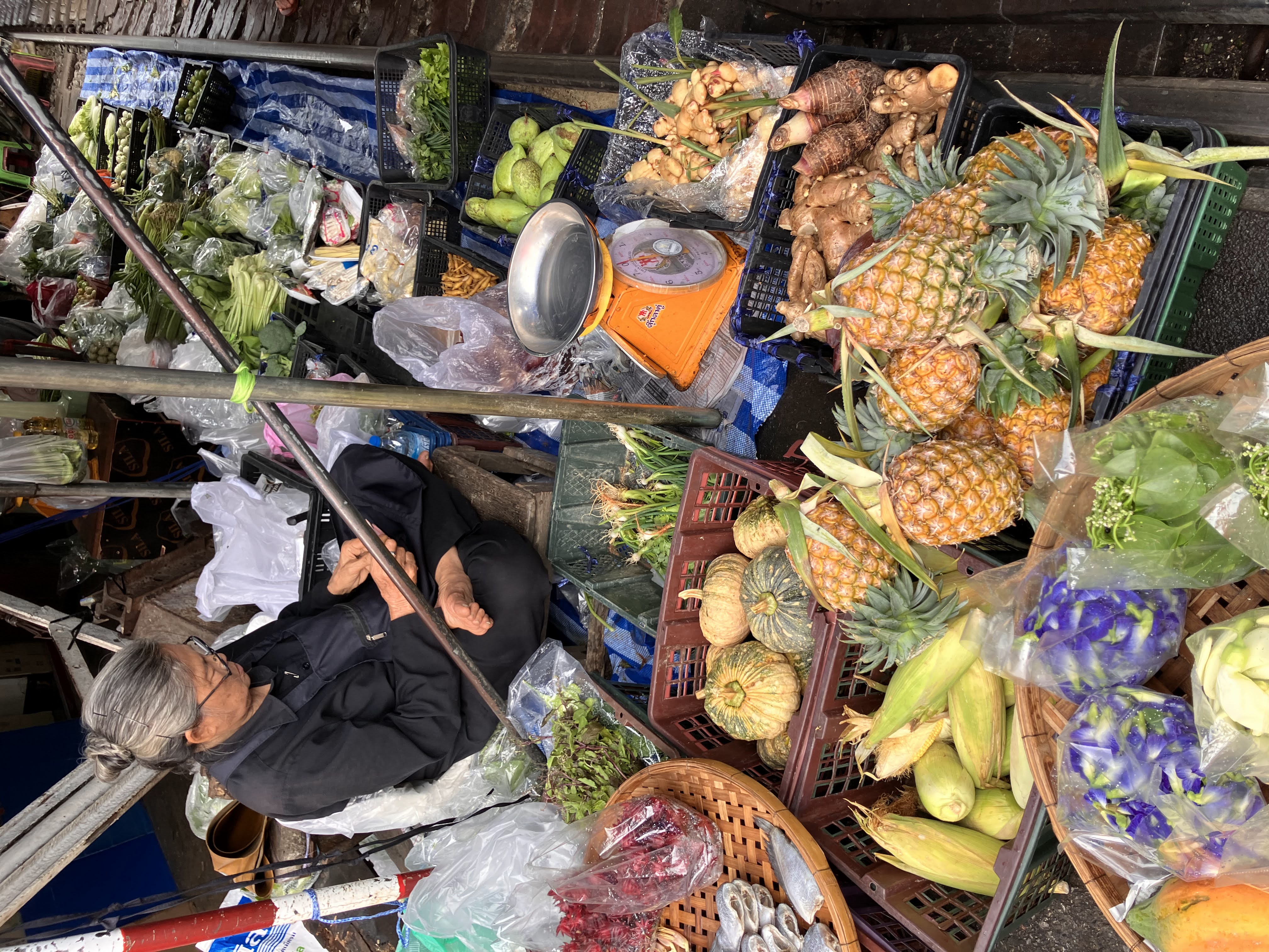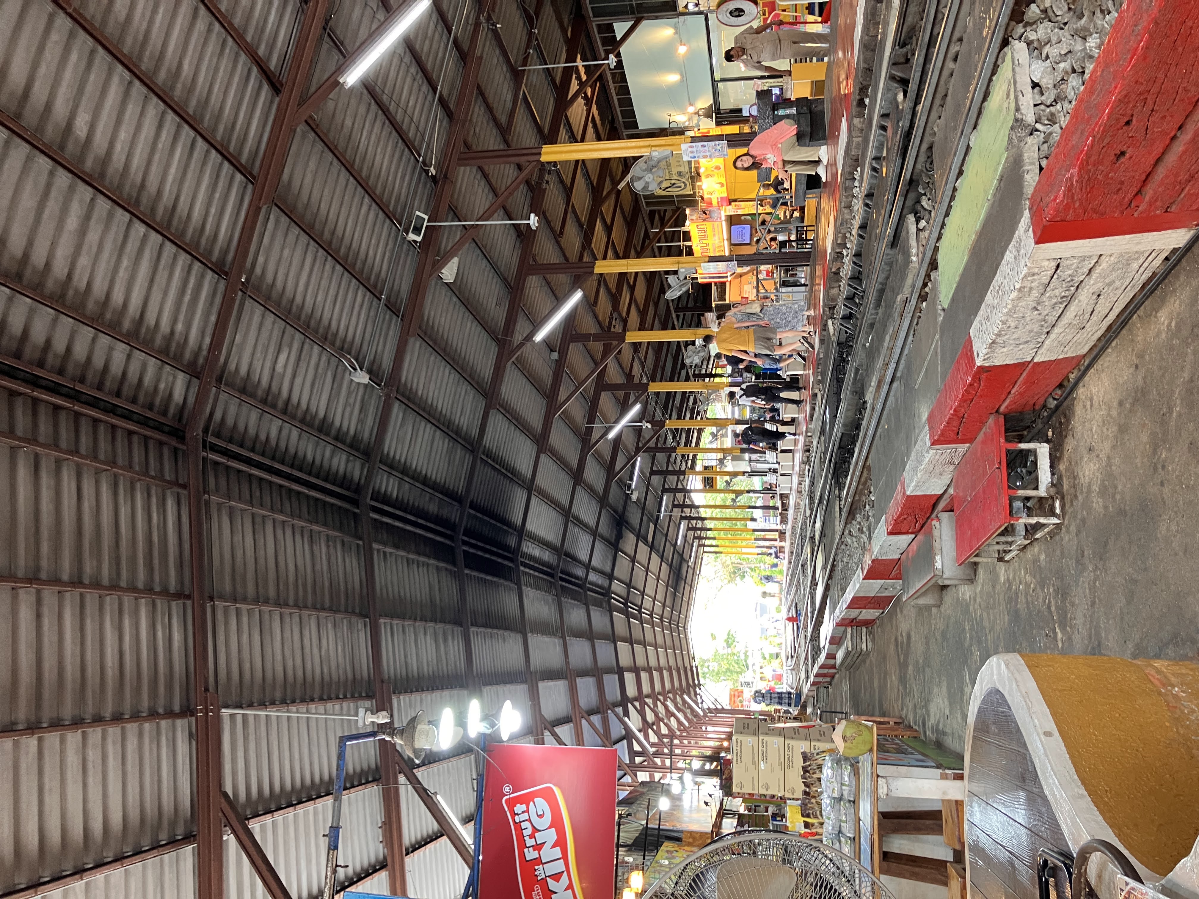 ガイドのジュリポンさんがとてもいいガイドさんで、ピンクのガネーシャを出発してバンコクへ向かう高速の手間で車を止めて地元の屋台のパイナップルを買ってくれました。冷たくて甘く美味しかったです。