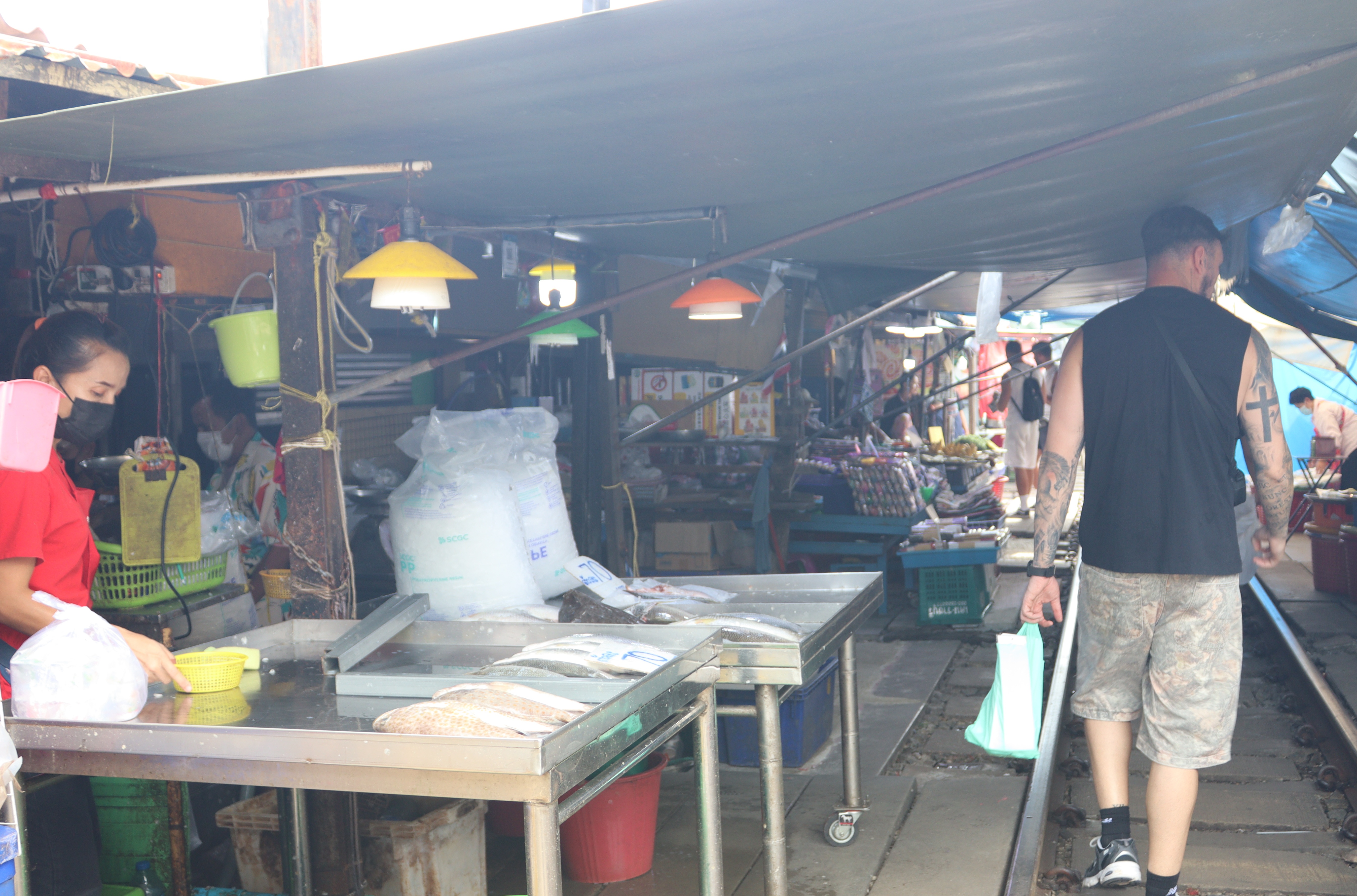 圧巻は列車で線路マーケットに入っていく時、ガイドのJERRYさんが許可を取ってくれ、列車の先頭から店をたたむ様子を。列車の最後部から店を広げる様子を見ることができました。