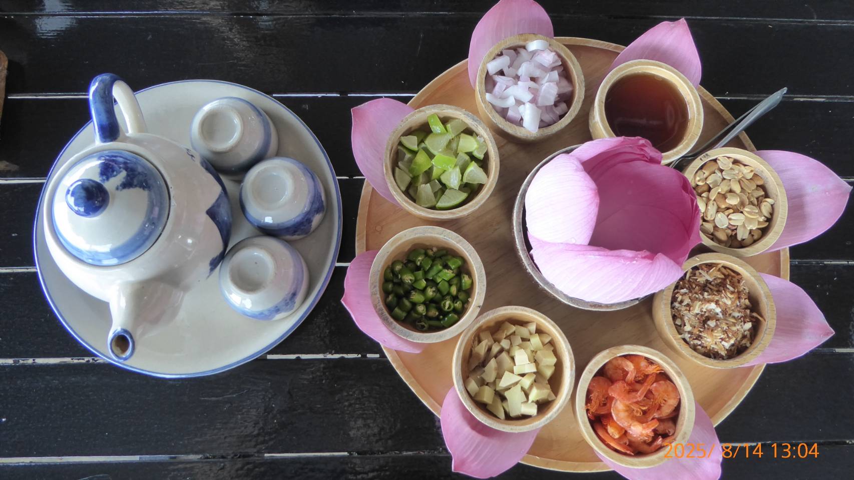 蓮池はコロナ以降に廃れてしまったとのことでマーケットはやっていませんでしたが、1軒だけ営業しているお店で名物(蓮の花びら包み)をいただくことができました。人が少なく静かでゆっくり過ごすことができました。ドローンで撮影した写真と動画はとてもいい思い出です。お寺は2カ所とも時間をかけて見学することができました。お昼の火山エビも楽しく美味しかったです。