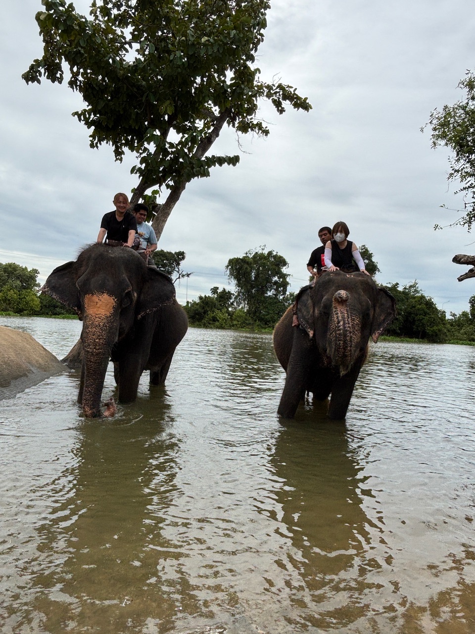 象に乗る前の注意点や、象と川の中までいけるのでどこまで濡れていいかの確認があります。足元だけであれば短パンで問題ないと思いますが、下半身までとなるといろんなところに水がかかるので着替えを持参することをお勧めします。新しいトイレ、更衣室、シャワー室もあるので安心でした。象に乗る時は象使いの方が後ろに付き、腰紐でバランスを取ってくれます。初めは緊張しましたが、すぐ象と同じ呼吸でお散歩することが出来ました。大体30分くらい散歩、象の身体を洗ってあげた後、餌作りという流れでした。今回子象が3頭おり、子象とも戯れることが出来ました。写真は施設の方が沢山撮ってくれたので良かったです。帰り道にロティー屋にも寄って頂き、あまりの美味しさにバンコクに着くまでに全部食べてしまいました。午前中にはバンコクに戻れるもの良かったです。ただ、帰りはホテルまでの送迎がない事が残念でした。あらためて観光施設で乗る象とは全く違う体験が出来るのと、極近くで象と遊べるのでとてもいいツアーだと感じました。