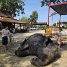 アユタヤ近くの象を育てているファームに訪れ現地の象使いの皆さんのお仕事も垣間見つつ、象に直乗りしたり、洗ってあげたりご飯を食べさせたりします。