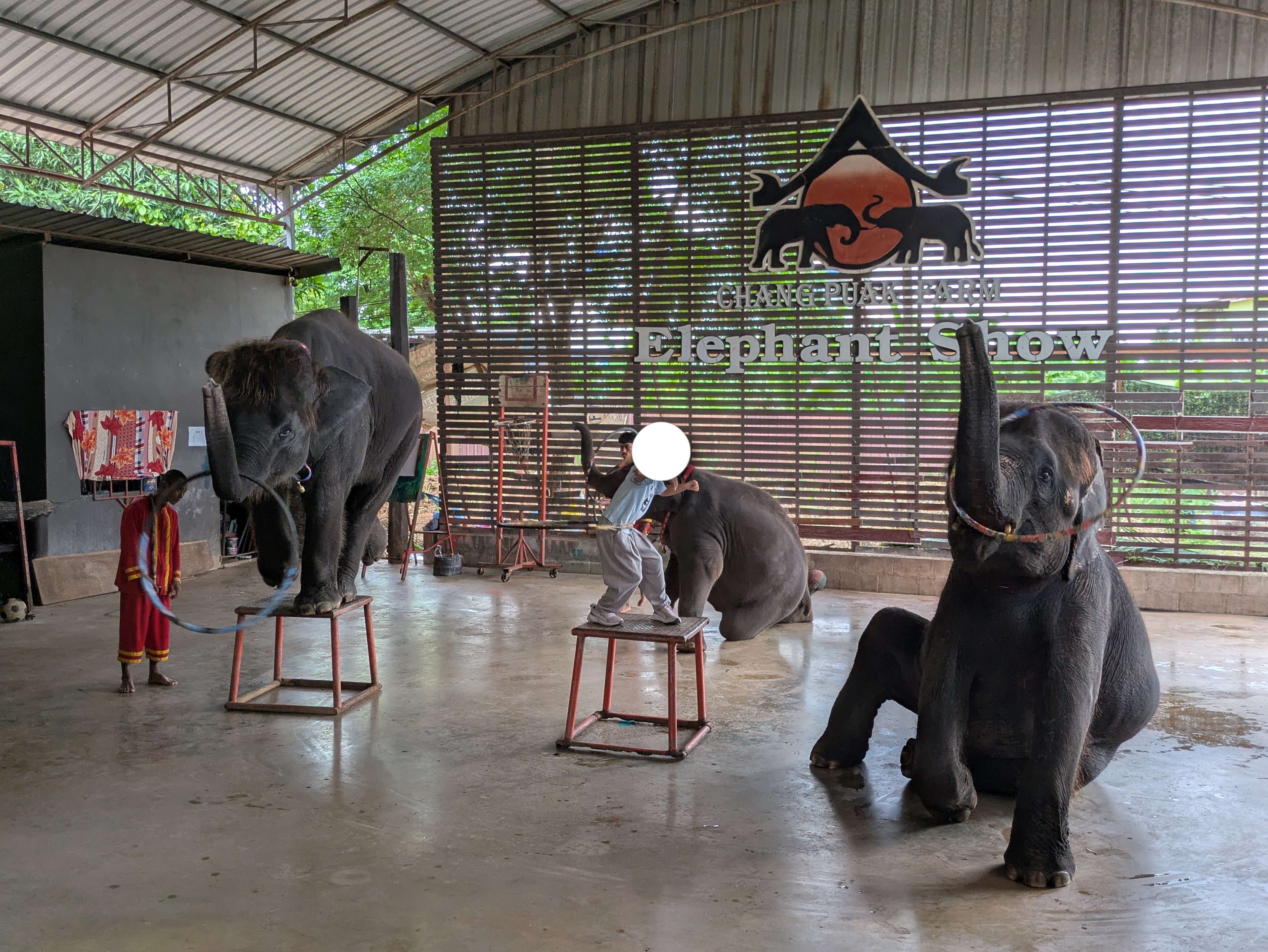 観光客の殆どが象乗り目標で、園内のショーはガラガラ。結局私達のみで貸し切り状態でした。象に乗せて頂いたり、鼻の上にのせて頂いたりと、本当にプライスレスな体験でした。