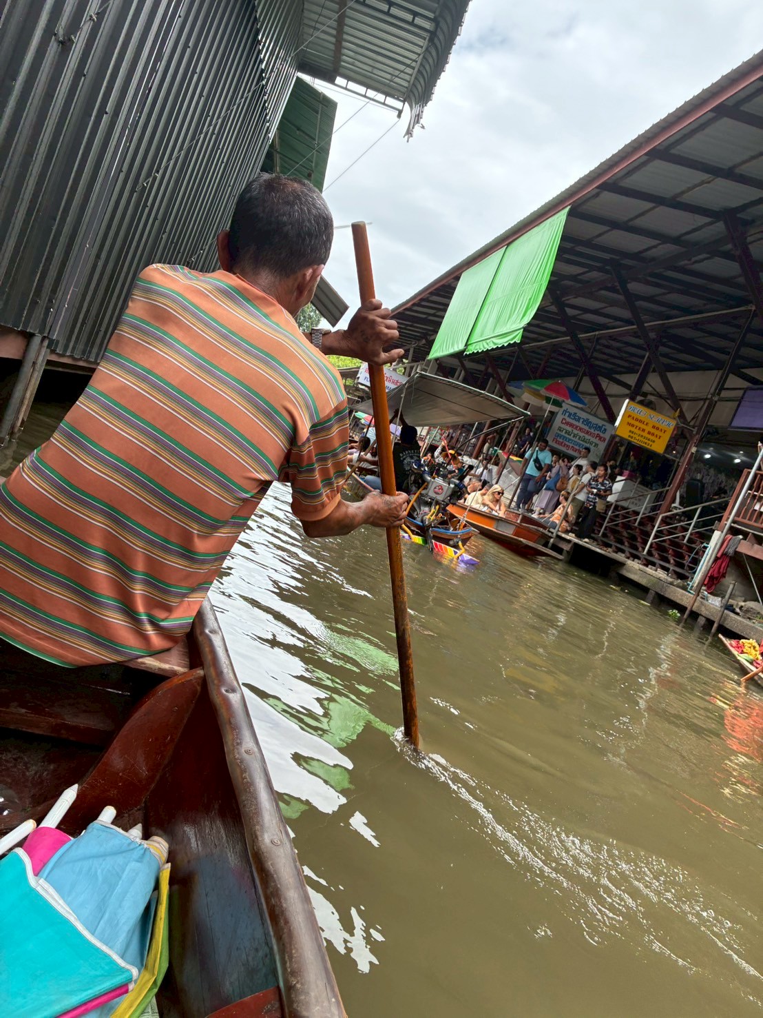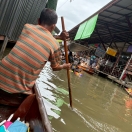 水上マーケットは売り子の押しが強いのですが、船頭が漕がないと永遠に逃げられないので買う気がある時だけ話しかけるようにしたほうが良いです。売り子と話すと船頭は漕ぐのをやめて止まってしまったり、ことさらゆっくり進むようになります。ツアー中に買えるお土産は後で行くメークロンでほぼ同じ物が最安値で買えると思います。