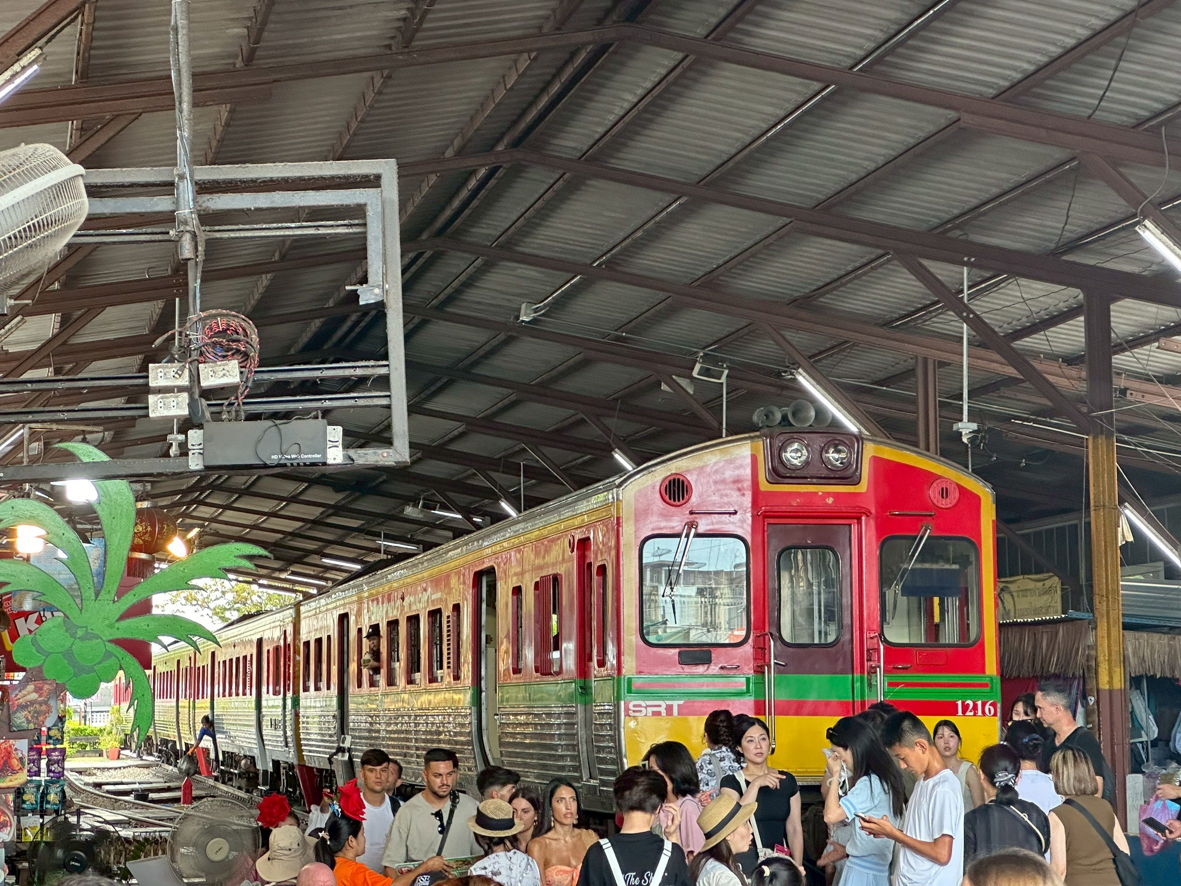 アユタヤなどの郊外に行かないと象乗り体験が出来ないと思っていましたが、旅行プランから外したくなかった水上マーケットとメークロン市場のツアーに加えて、象乗りが出来ることがこのツアーの決め手となりました。メークロン市場では、自分の目の前で電車が走るのを見られれば良いかと最初は思っていましたが、列車に乗れたことが想定外の最高の経験になりました。ツアーガイドさんは、メークロン市場に到着に合わせて列車の車掌と交渉してくれ、運転席の真横の席に通してくれたのです。お陰で、世界中の人たちがすれすれになる列車を待ち構える状況を列車の先頭車両から見渡すことも出来ました。また、列車の到着後は、停止した先頭車両に登っての子供達の写真撮影を案内してくれました。その後は、折り返し列車の出発時に目の前を走る列車を見る体験もちゃんと出来ました。JUREEさんは大当たりのツアーガイドです。最高の経験をありがとうございました。
