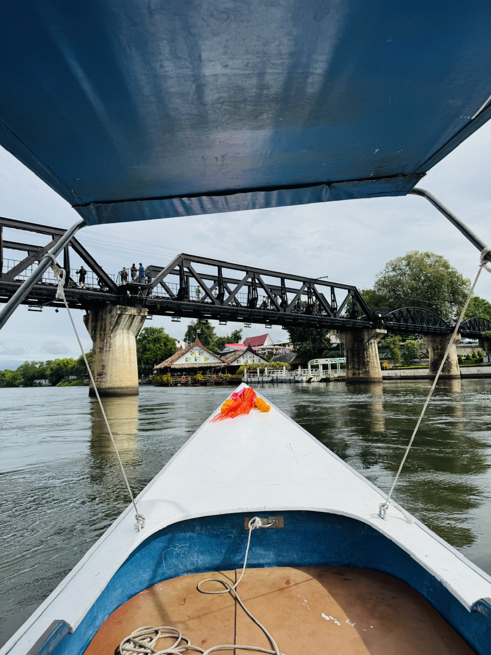 カンチャナブリ鉄橋近郊まで車で移動して、そこから鉄橋がかかる川をロングテイルのスピードボートで約10分程、心地よい風と景色を愉しみながら移動します。カンチャナブリ鉄橋の下を通る特別な体験が良かったです。鉄橋を歩いて楽しむ時間もちょうど良く、その後拝見した第二次世界大戦博物館で当時の状況がとても理解できました。