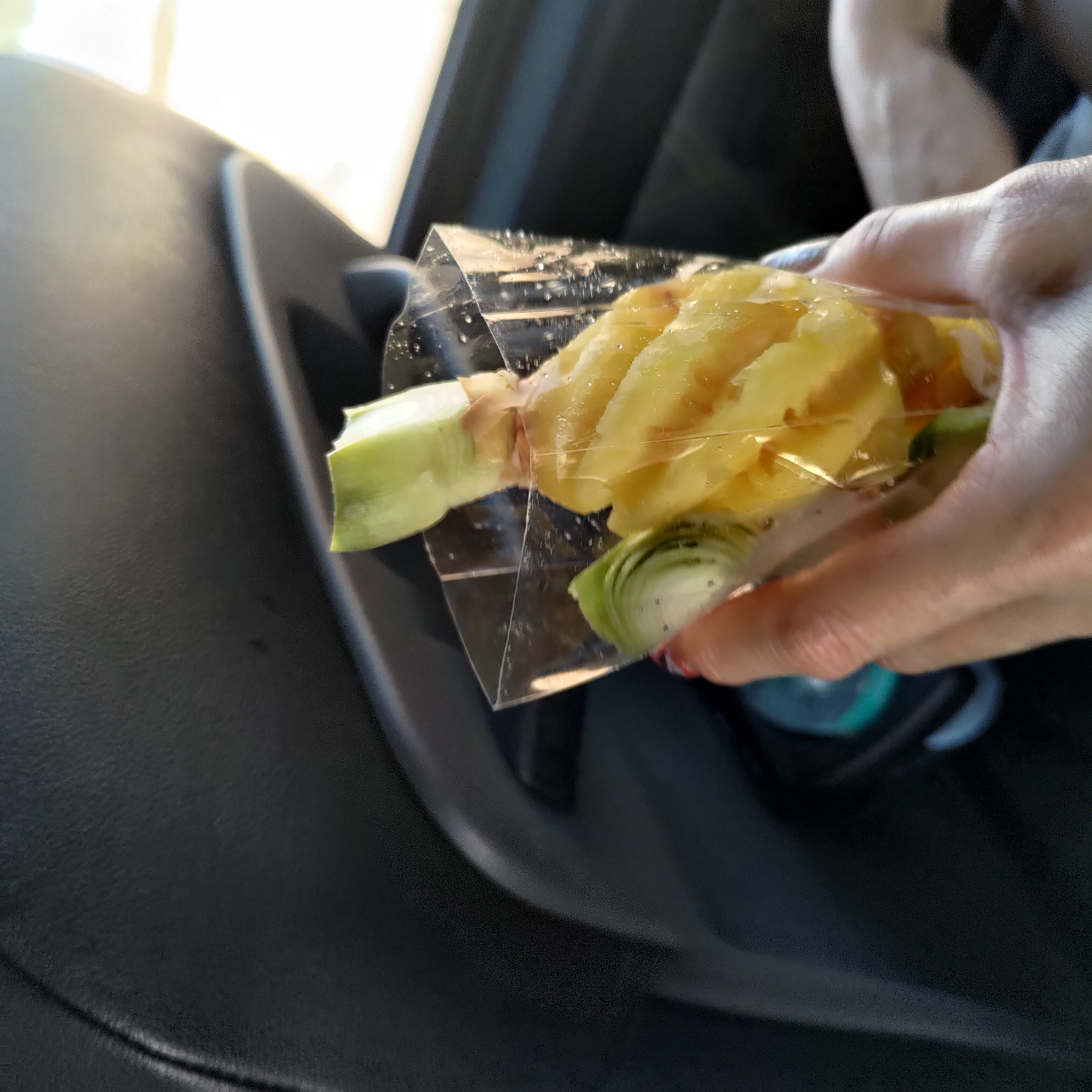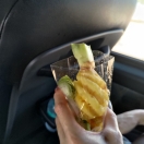 ガイドのジュリポンさんがとてもいいガイドさんで、ピンクのガネーシャを出発してバンコクへ向かう高速の手間で車を止めて地元の屋台のパイナップルを買ってくれました。冷たくて甘く美味しかったです。