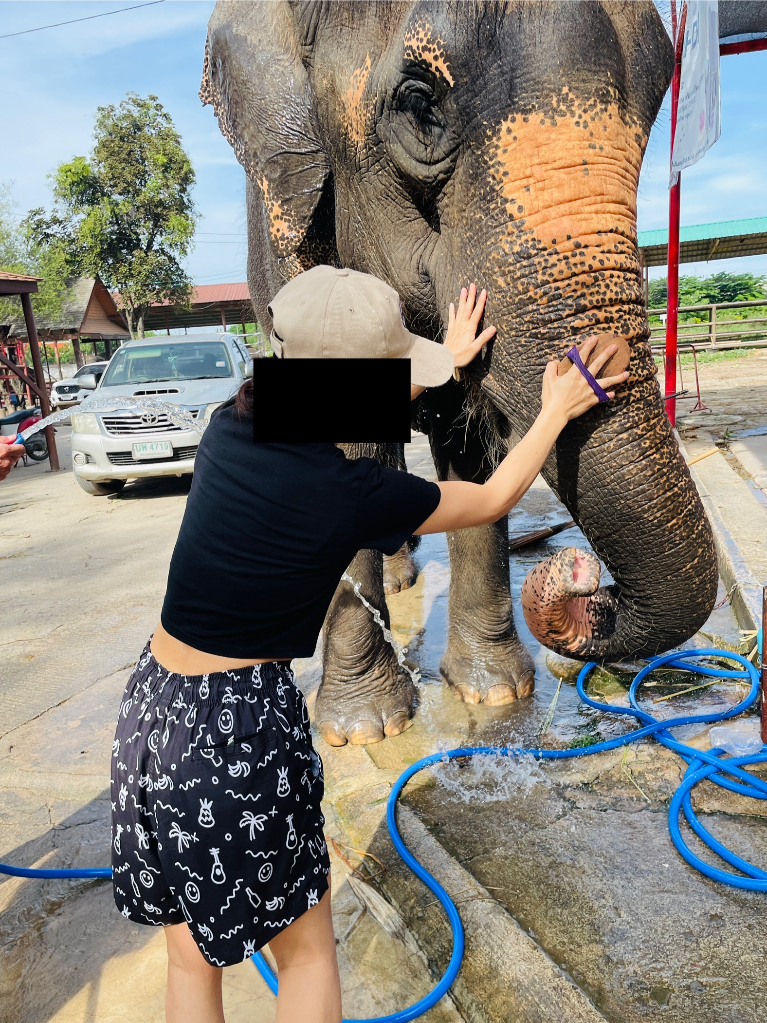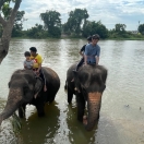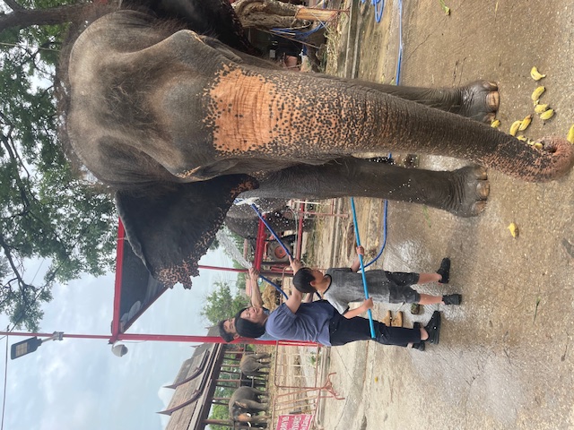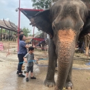 象に乗る前の注意点や、象と川の中までいけるのでどこまで濡れていいかの確認があります。足元だけであれば短パンで問題ないと思いますが、下半身までとなるといろんなところに水がかかるので着替えを持参することをお勧めします。新しいトイレ、更衣室、シャワー室もあるので安心でした。象に乗る時は象使いの方が後ろに付き、腰紐でバランスを取ってくれます。初めは緊張しましたが、すぐ象と同じ呼吸でお散歩することが出来ました。大体30分くらい散歩、象の身体を洗ってあげた後、餌作りという流れでした。今回子象が3頭おり、子象とも戯れることが出来ました。写真は施設の方が沢山撮ってくれたので良かったです。帰り道にロティー屋にも寄って頂き、あまりの美味しさにバンコクに着くまでに全部食べてしまいました。午前中にはバンコクに戻れるもの良かったです。ただ、帰りはホテルまでの送迎がない事が残念でした。あらためて観光施設で乗る象とは全く違う体験が出来るのと、極近くで象と遊べるのでとてもいいツアーだと感じました。