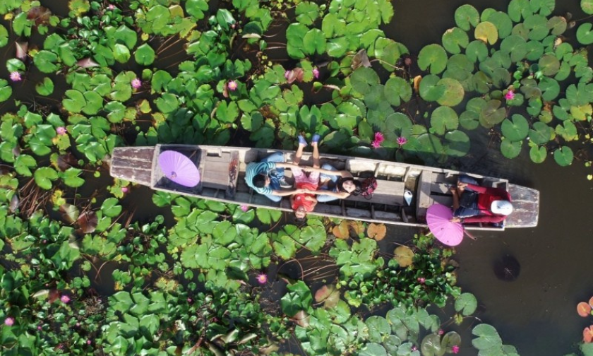 ダムヌンサドゥアック水上マーケット +スピードボード乗船付き ココナッツファームお立ち寄り
