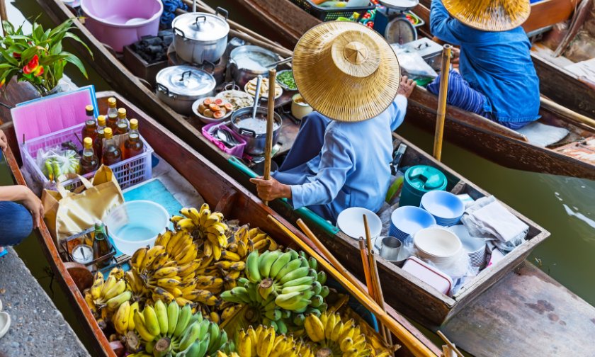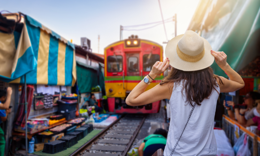 \春旅キャンペーン価格/人気2大市場 ダムヌンサドゥアック水上マーケット&メークロン線路市場(選べる象乗りor首長族訪問)<週3日運行>