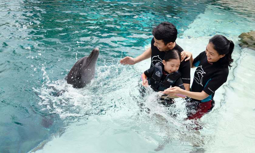 セントーサ島でイルカと触れ合い体験♪ドルフィンアイランド +アドベンチャー・コーブ・ウォーターパーク
