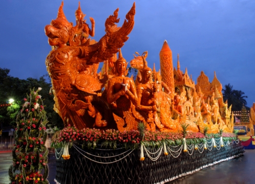 タイ三大祭りをご存知でしょうか。「ロイクラトン」、「スリン象祭り」、そして今回ご案内の「ウボンラーチャターニーのキャンドルフェスティバル」です。カオパンサー(僧がお寺に籠り修業を始める日)に合わせ、蜜蝋に彫刻を施した迫力ある山車が市内を練り歩きます。先史時代に描かれたと言われる壁画のあるパーテム国立公園にも訪れます。