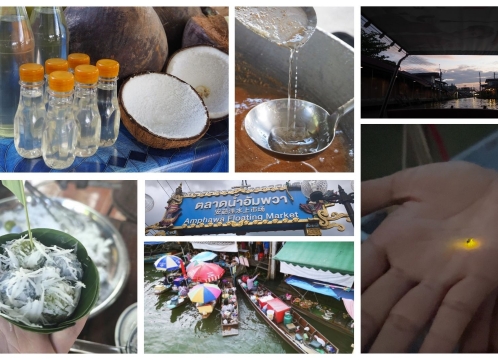 午後半日プラン・ココナッツオイル&タイ伝統菓子「カノムトム」作り+アンパワー水上マーケット + ホタル観賞ナイトクルーズ
