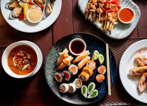 ②ランチクルーズはインターナショナルビュッフェ。タイ料理が苦手な方も楽しめる