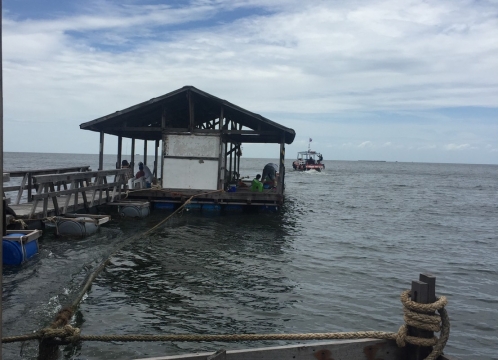 シーチャン島到着。釣り場の筏へご案内