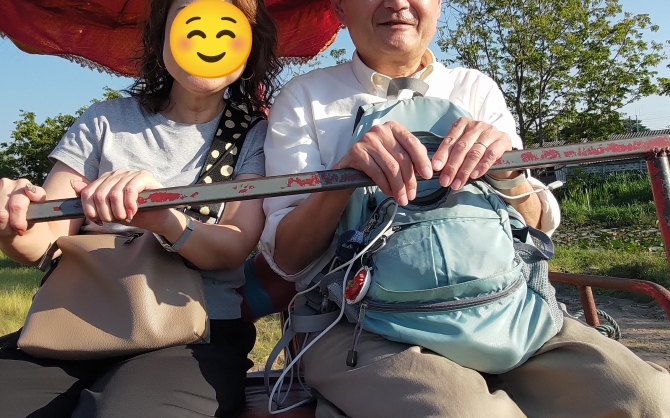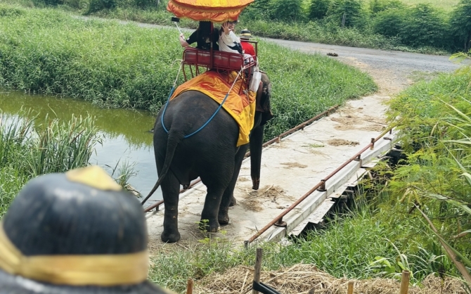 ゾウ乗り。自然たっぷりで癒される景色でした!