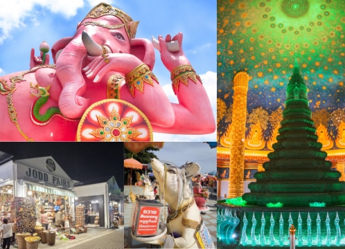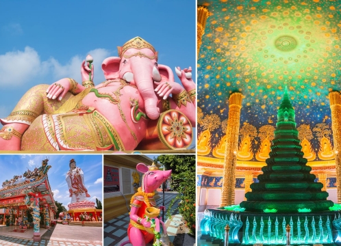 \春旅 特別価格/ ピンクガネーシャ(ワット・サマーンラッタナーラーム)&ワット・パクナム 往復シャトルバス <日本語ガイドなし/午後発/ナイトマーケット解散>のツアーですね!