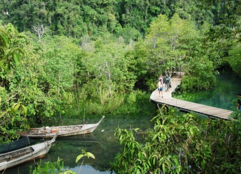 クラビの市街地から車で1時間。木々が深く生い茂るその先の秘境「クロントム温泉」へお連れします。クロントム温泉は滝や川で湧き出た源泉かけ流しの温泉で、お湯の温度は約38~42℃と適温。木々に囲まれながらゆったりと温泉気分を味わえます。また、エメラルドプールは美しいエメラルドグリーン色をした淡水の天然プールです。ビーチとはまたひと味違った雰囲気の中で、心も体もリラックスできます。