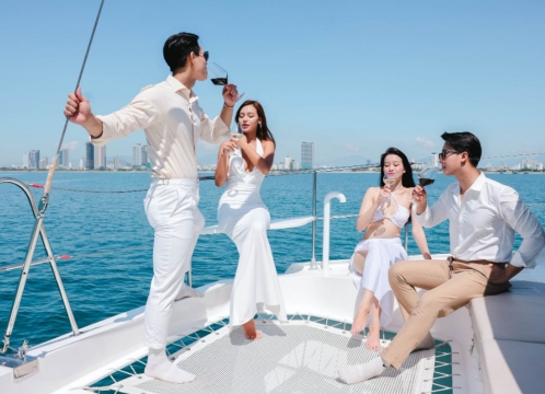 【ダナン発着】海風感じるクルージングとギリシャ・サントリーニ風カフェ「ソンチャマリーナ(Son Tra Marina)」